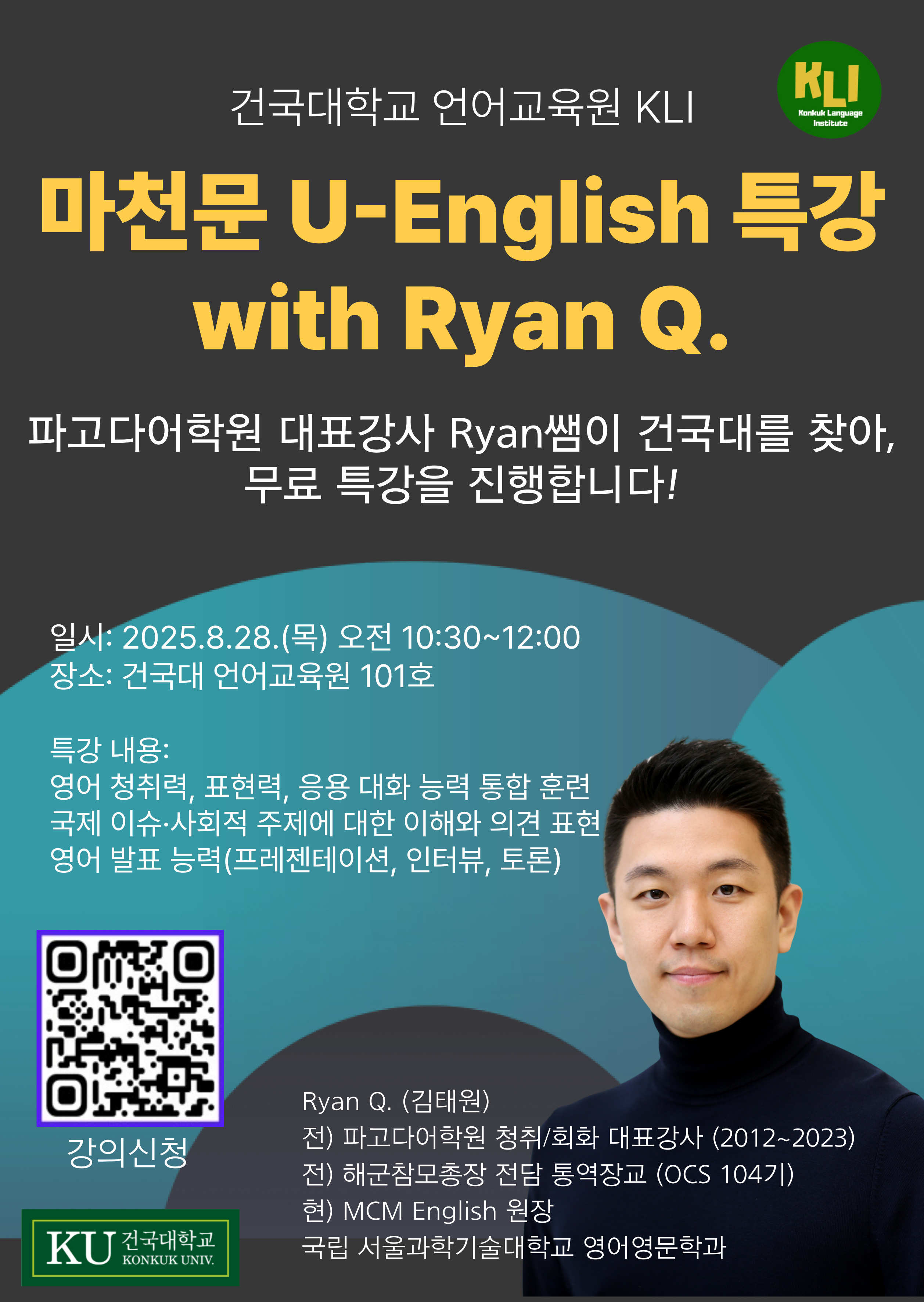 [특강] 마천문 U-English 특강 with Ryan Q. 신청 안내