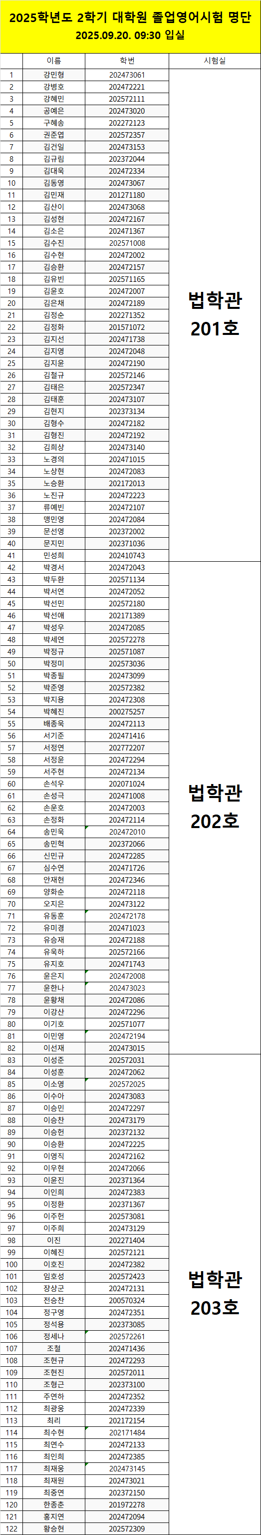 [2025년 1학기 2차 대학원 졸업인증 영어시험] 시험실 및 준비사항 안내