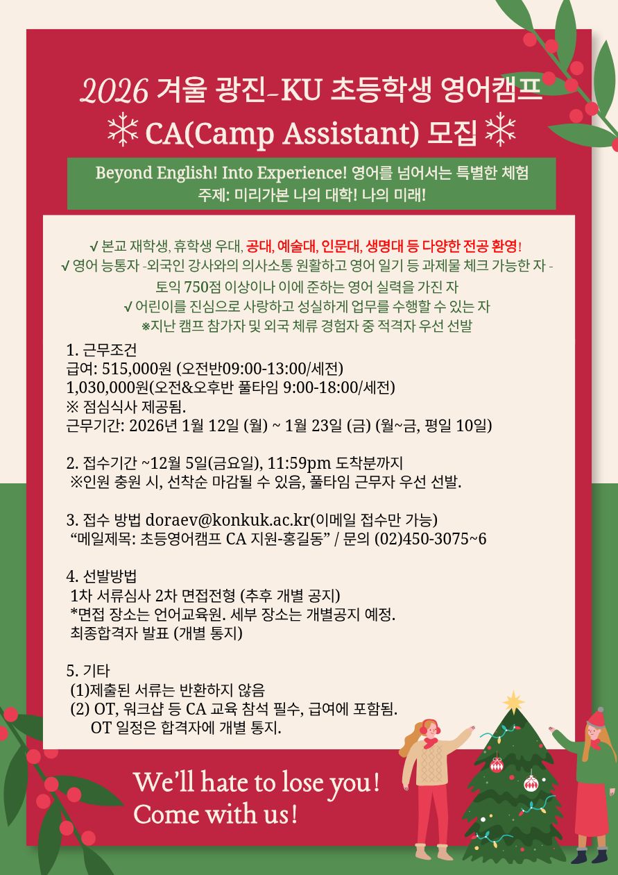 2025 겨울 광진-KU 초등학생 영어캠프 CA(Camp Assistant)모집