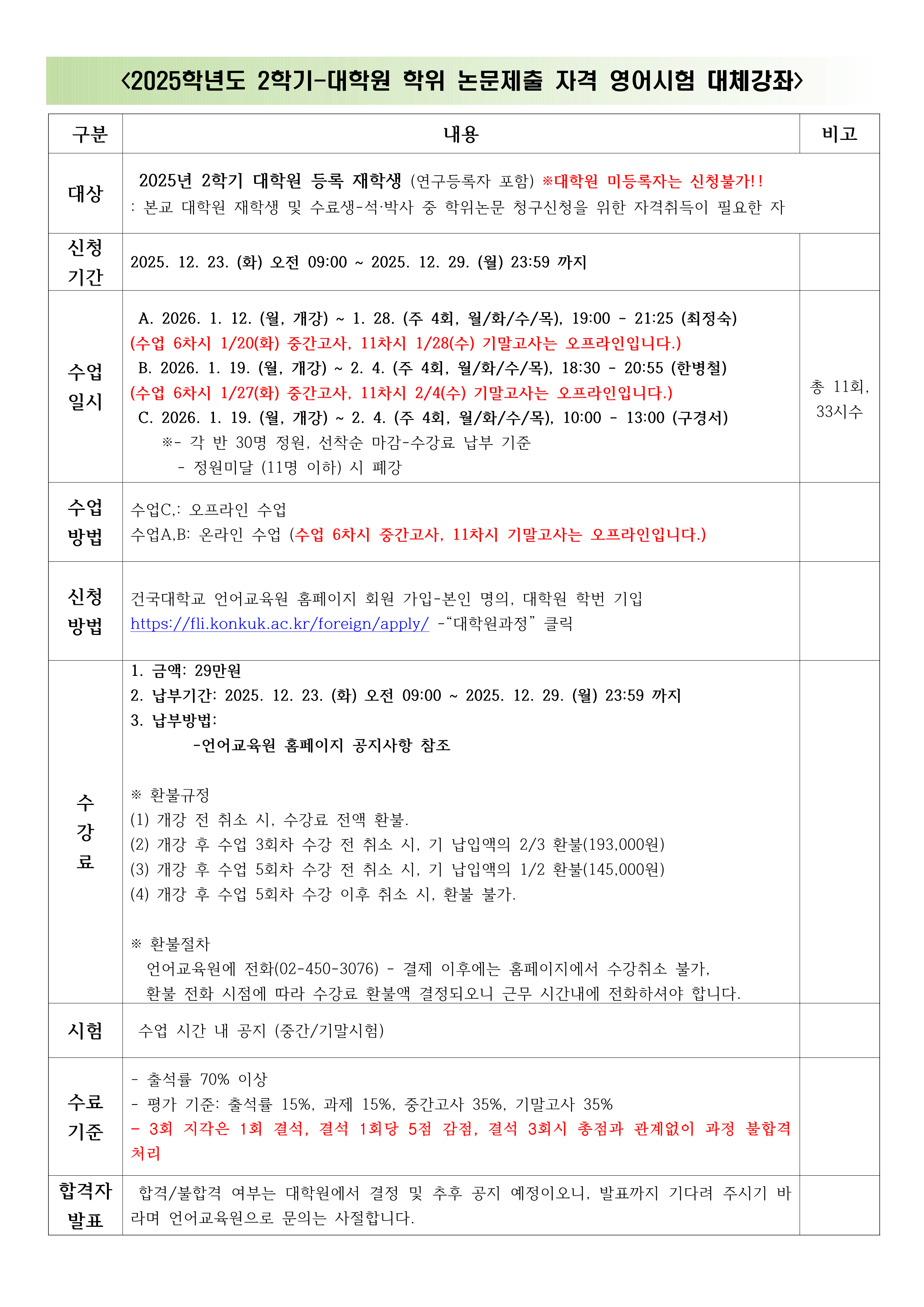 [2025학년도 2학기 2차-대학원 학위 논문제출 자격 영어시험 대체강좌]-신청 방법 안내